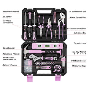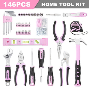 Enventor Pink Household Tool Kit, 146 Pieces with Storage Case, for Home Maintenance and DIY Projects